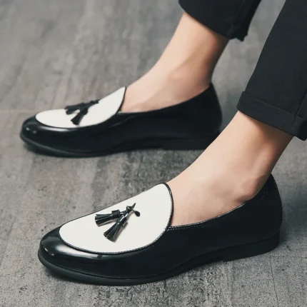 LUXURY ITALIAN LOAFERS MEN DRESS SHOES FASHION HAND-MADE SLIP ON TASSEL LOAFERS WEDDING OFFICE SHOES CASUAL MEN SHOES LEATHER