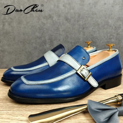 LUXURY BRAND MEN LEATHER SHOES BLACK BLUE MONK STRAP SLIP ON CASUAL MEN DRESS SHOES WEDDING OFFICE LOAFERS SHOES FOR MEN