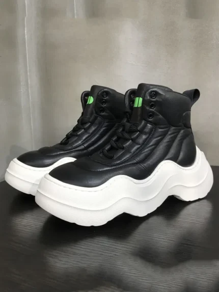 Mens High Top Sneakers Thick Bottom Genuine Leather Casual Shoes Autumn Winter Fleece Liner High Street Fashion Hip Hop Shoes