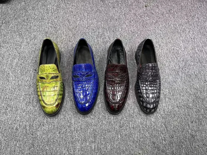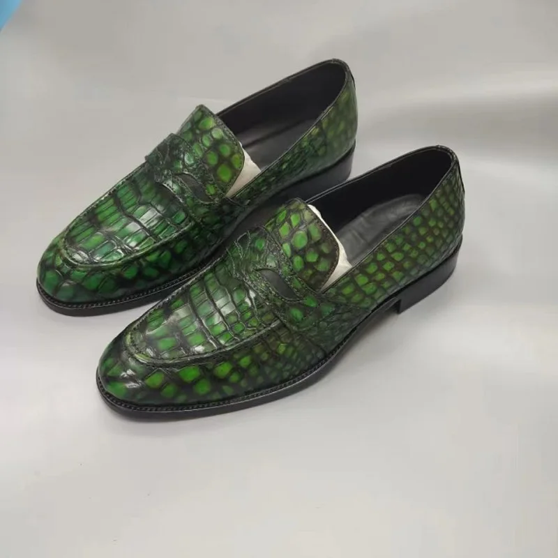 High Quality Genuine Leather Men’s Casual Shoes Brand Cowhide Leather Shoes Crocodile Pattern Loafers Ladies Moccasin Flat Shoes