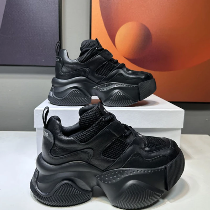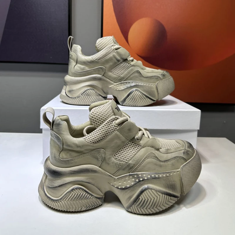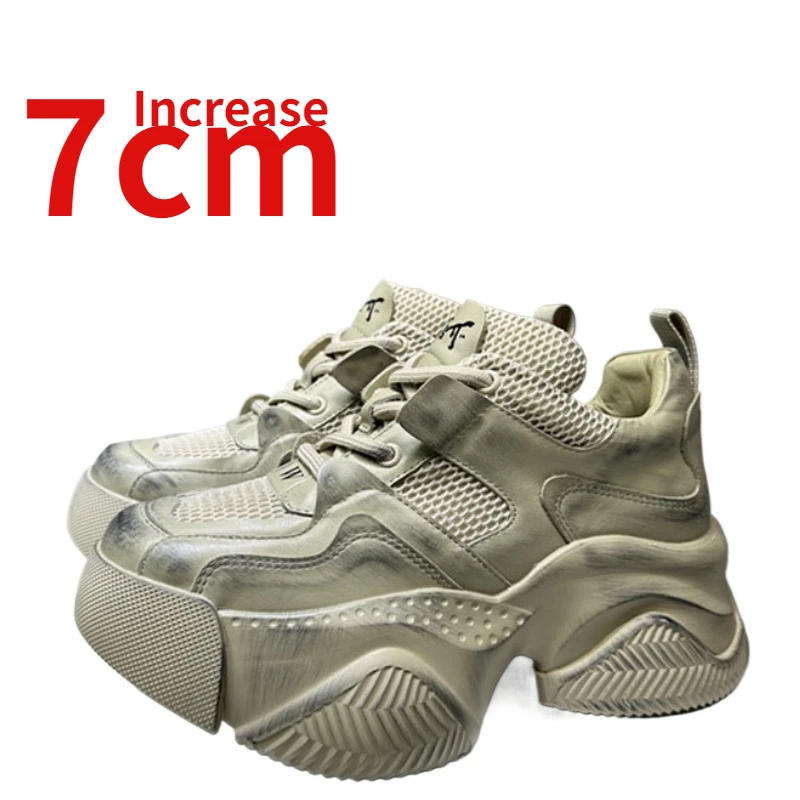 European/American Boutique Casual Sneakers Increased 7cm Genuine Leather Thick Bottom Sports Shoes for Women’s Street Dad Shoes