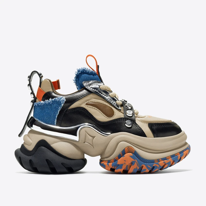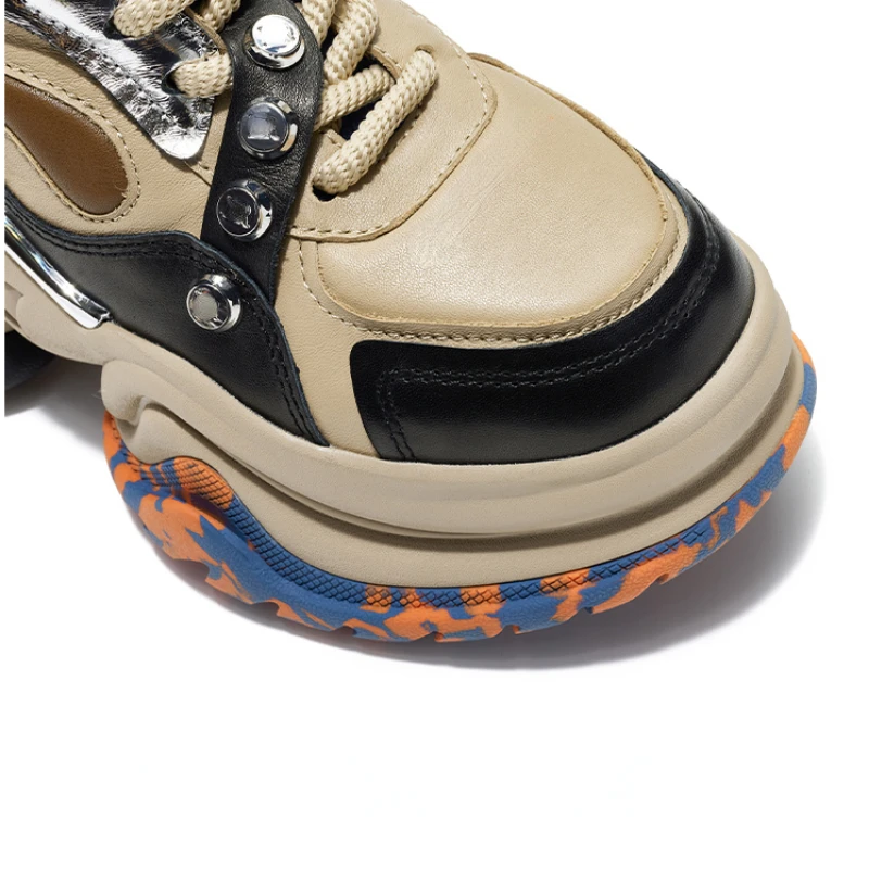 European/American Street Trends Design Shoes for Women’s Increase 7cm Genuine Leather Thick Soled Dad’s Shoes Casual Sports Shoe