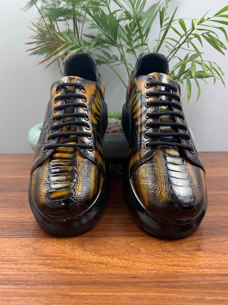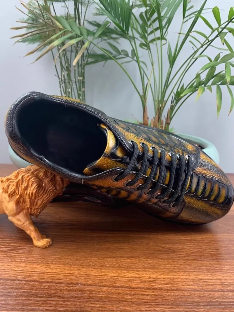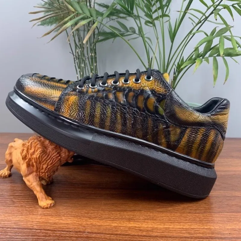Be the first to review “Fashion Ostrich Skin High Quality Mens Genuine Leather Casual Shoes Lace Up Round Toe Thick Platform Shoes Customized 15 Days” Cancel reply