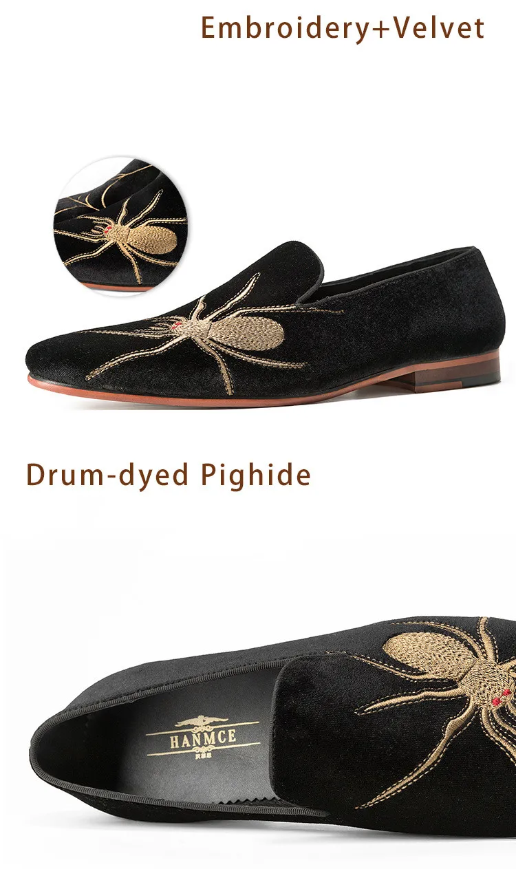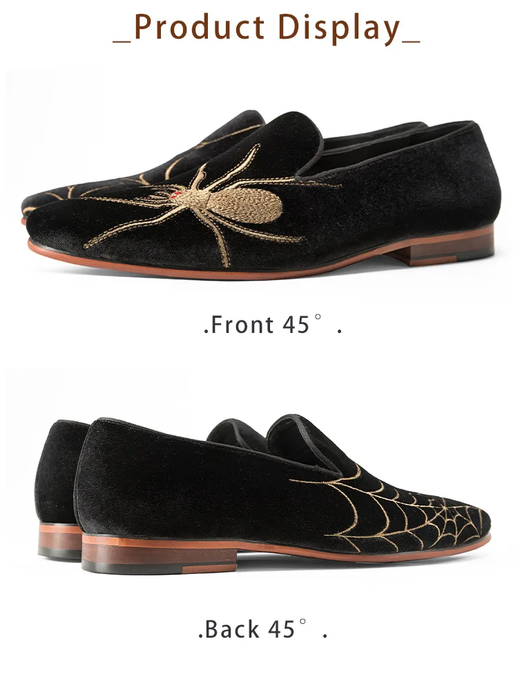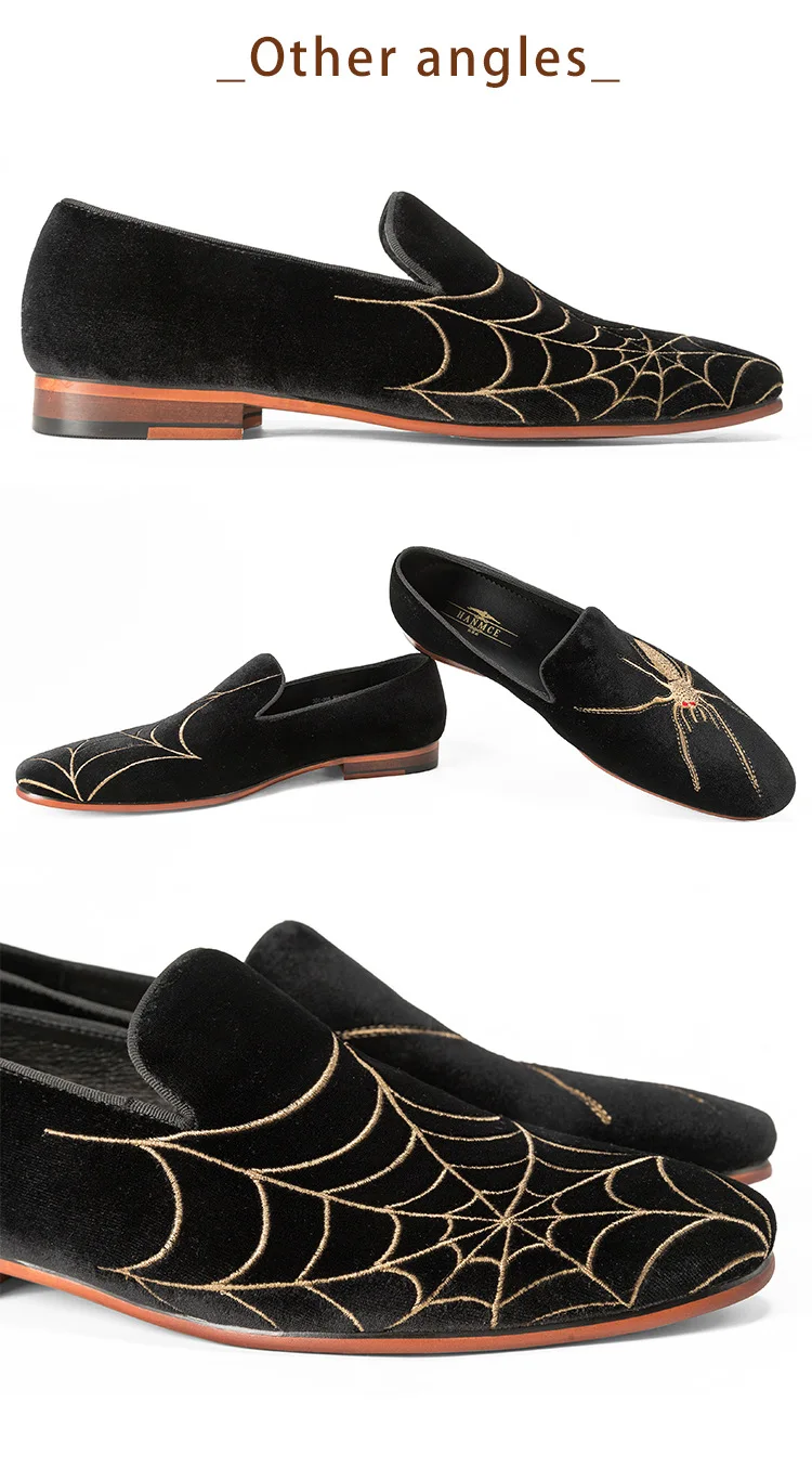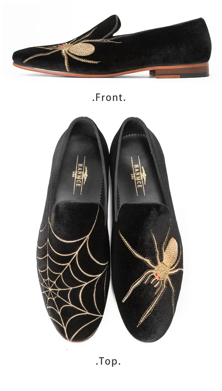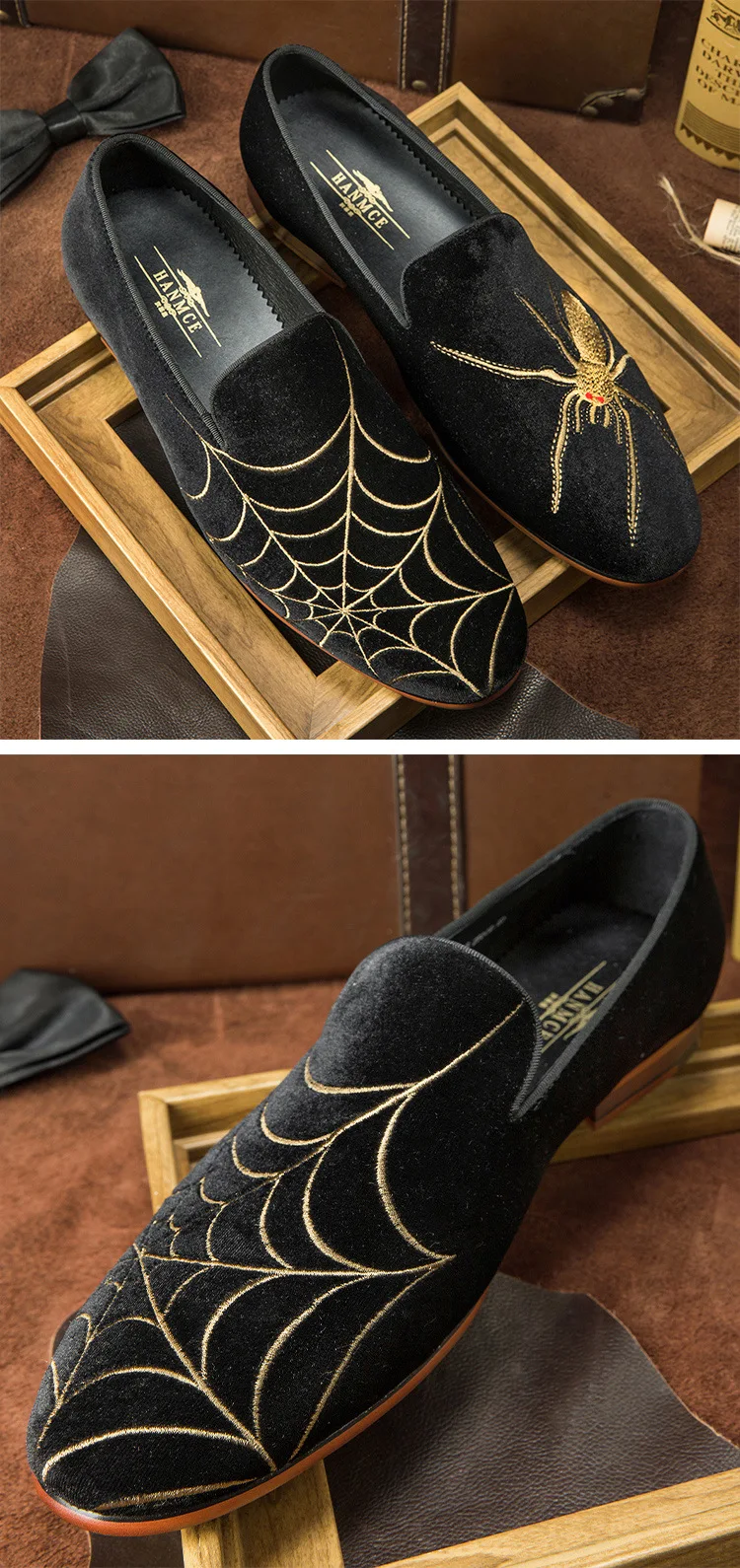 Men Loafers Handmade Genuine Suede Leather Low Heel Spider Web Embroidery Slip On Casual Party Shoes Comfort Moccasins Shoes