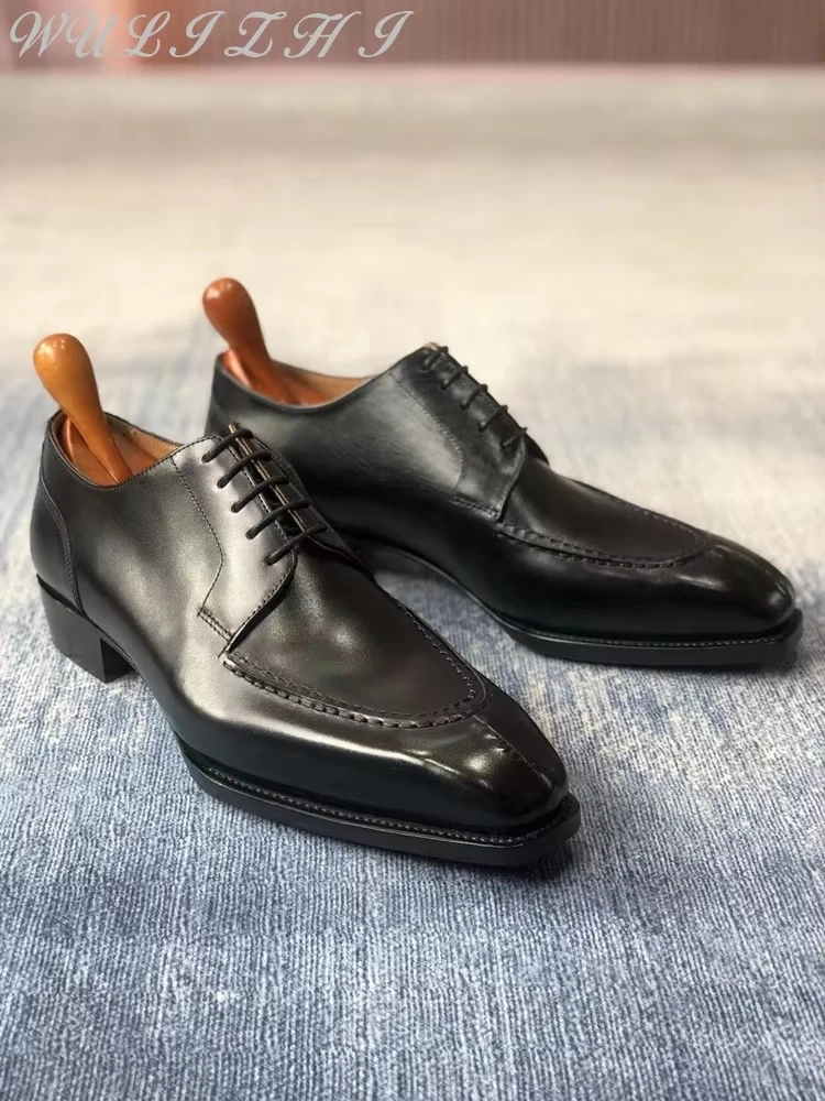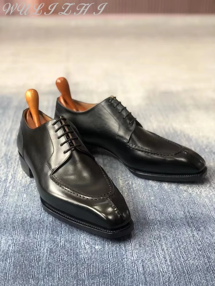 Men’s Wedding Shoes Genuine Leather Formal Banquet Cowhide Shoes Young Business Comfortable Derby Shoes Lace Up Office Shoe