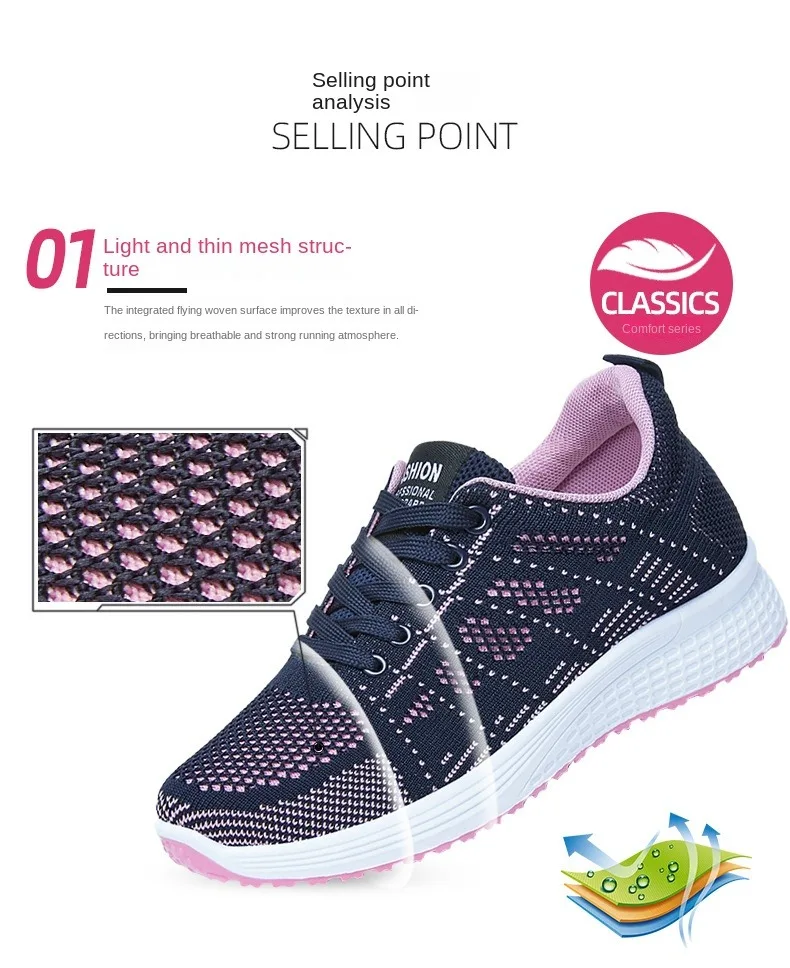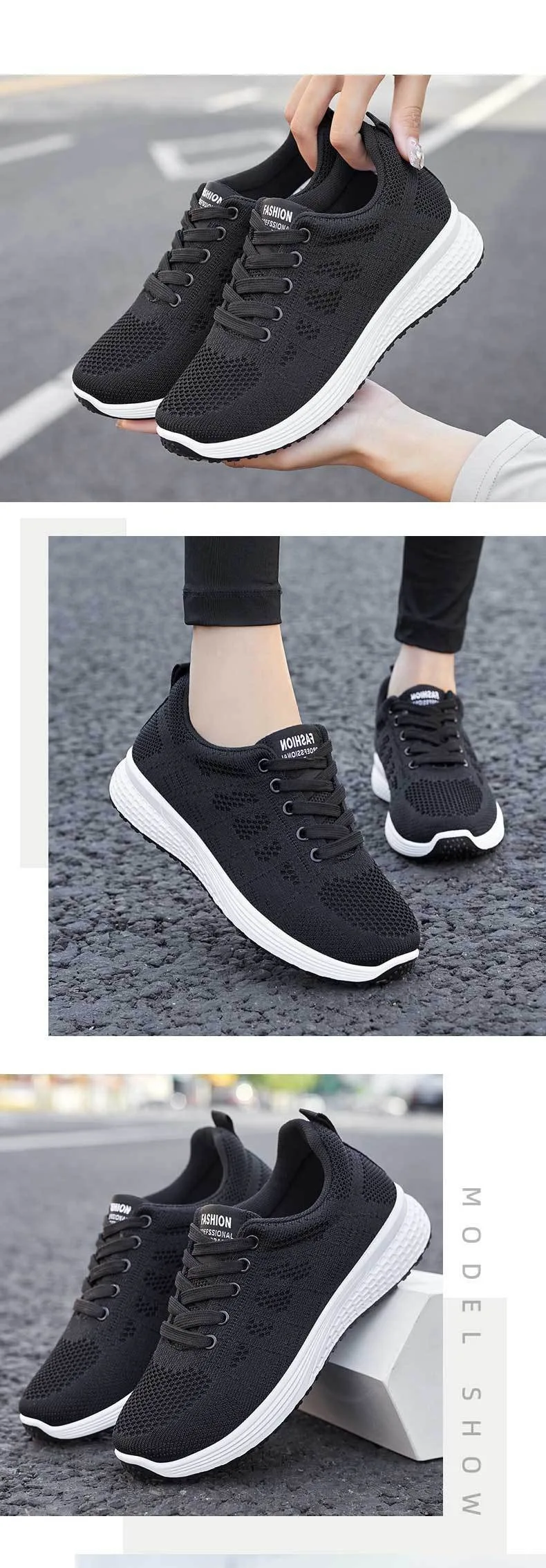OFF | 2024 New UZZDSS Women Casual Shoes Fashion Breathable Walking Mesh Flat Shoes Woman White Sneakers Tenis Feminino Female S