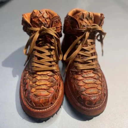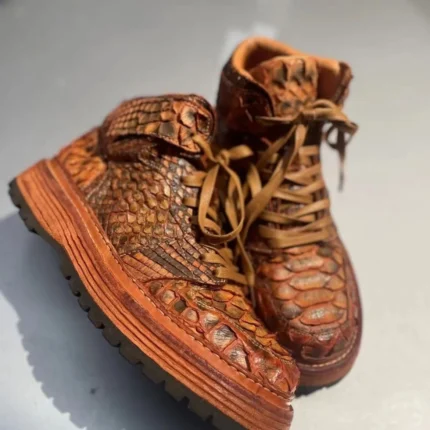 SIPRIKS Fashion trend snake leather sports casual boots men’s high-top shoes leather sole plus rubber inner leather two colors